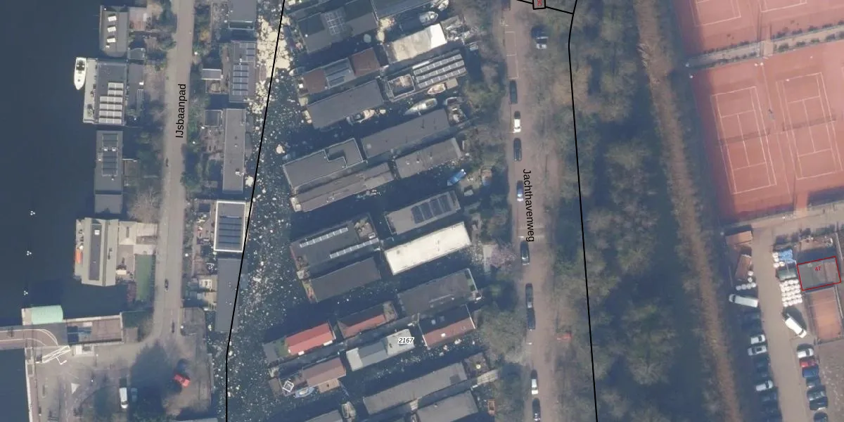 Jachthavenweg 14-A is gelegen op kadastraal perceel ASD23AB2167. Deze kadastrale aanduiding is uniek en wordt gebruikt door het Kadaster om eigendomsrechten en andere zakelijke rechten vast te leggen. Het perceel maakt onderdeel uit van de kadastrale gemeente Amsterdam.