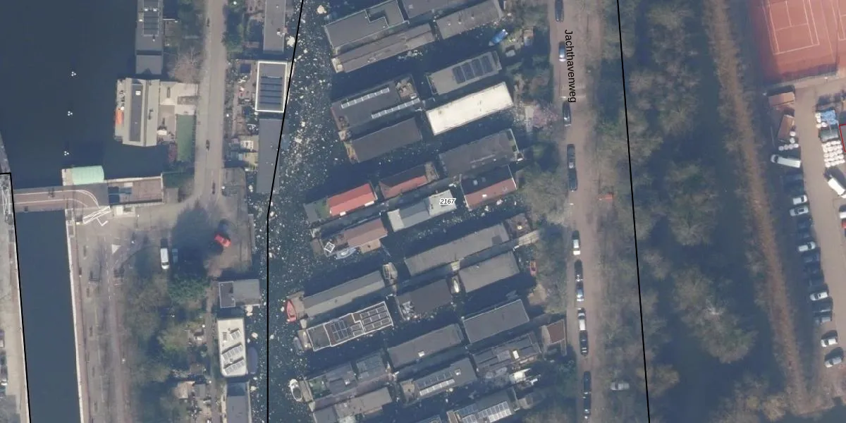 Het perceel waarop Jachthavenweg 20-B staat heeft een oppervlakte van 1,7 ha. Dit is een zeer groot perceel. De perceeloppervlakte wordt geregistreerd door het Kadaster. Gedetailleerde informatie over de maten van dit perceel kunt u vinden in het rapport Kadastrale kaart met maatvoering van Jachthavenweg 20-B.