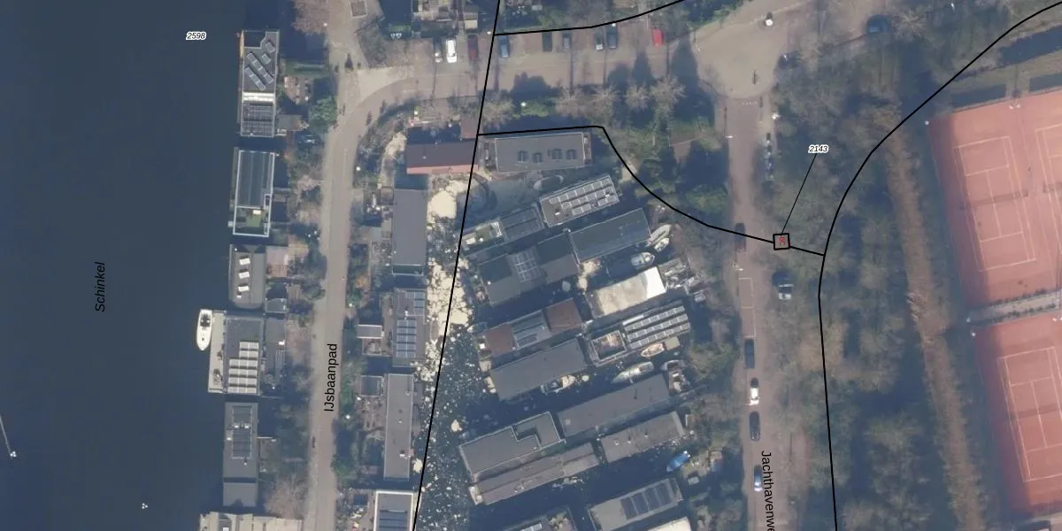 Het perceel waarop Jachthavenweg 4-B staat heeft een oppervlakte van 1,7 ha. Dit is een zeer groot perceel. De perceeloppervlakte wordt geregistreerd door het Kadaster. Gedetailleerde informatie over de maten van dit perceel kunt u vinden in het rapport Kadastrale kaart met maatvoering van Jachthavenweg 4-B.