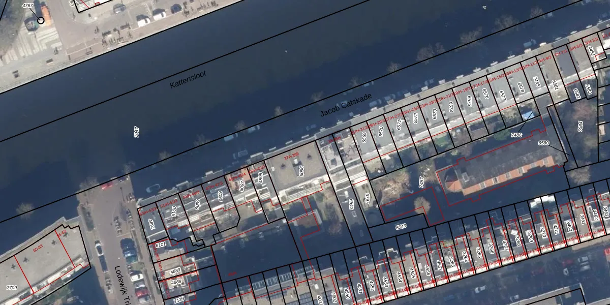 Jacob Catskade 37-A is gelegen op kadastraal perceel ASD13Q6096. Deze kadastrale aanduiding is uniek en wordt gebruikt door het Kadaster om eigendomsrechten en andere zakelijke rechten vast te leggen. Het perceel maakt onderdeel uit van de kadastrale gemeente Amsterdam.