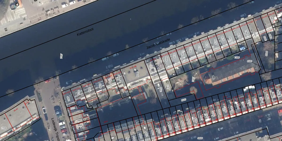 Jacob Catskade 37-E is gelegen op kadastraal perceel ASD13Q6096. Deze kadastrale aanduiding is uniek en wordt gebruikt door het Kadaster om eigendomsrechten en andere zakelijke rechten vast te leggen. Het perceel maakt onderdeel uit van de kadastrale gemeente Amsterdam.