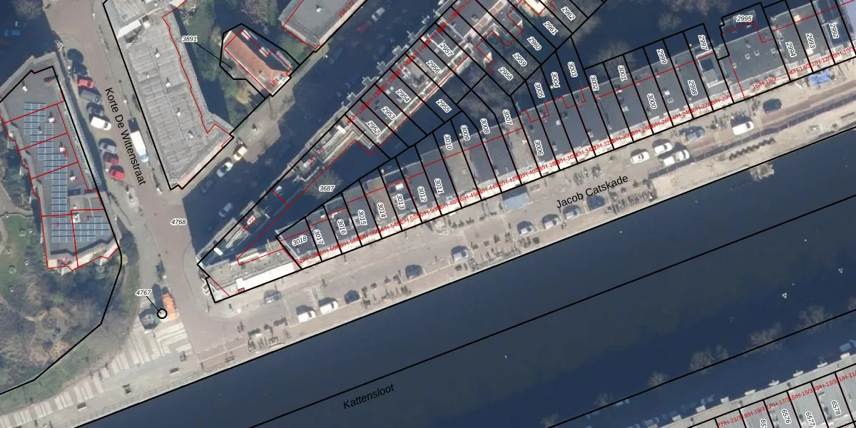 Het perceel waarop Jacob Catskade 50-H staat heeft een oppervlakte van 86 m². Dit is een klein perceel. De perceeloppervlakte wordt geregistreerd door het Kadaster. Gedetailleerde informatie over de maten van dit perceel kunt u vinden in het rapport Kadastrale kaart met maatvoering van Jacob Catskade 50-H.