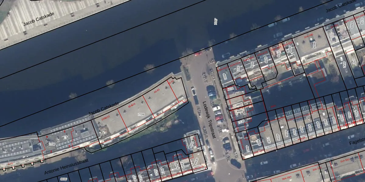 Het perceel waarop Jacob Catskade 59 staat heeft een oppervlakte van 914 m². Dit is een groot perceel. De perceeloppervlakte wordt geregistreerd door het Kadaster. Gedetailleerde informatie over de maten van dit perceel kunt u vinden in het rapport Kadastrale kaart met maatvoering van Jacob Catskade 59.