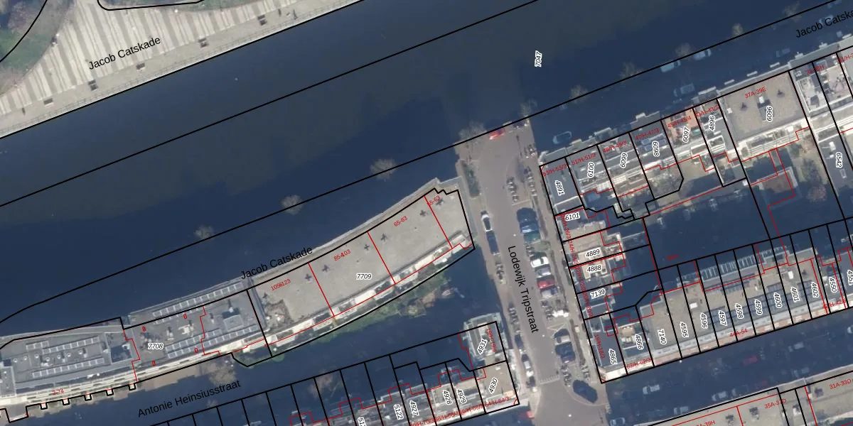Het perceel waarop Jacob Catskade 73 staat heeft een oppervlakte van 914 m². Dit is een groot perceel. De perceeloppervlakte wordt geregistreerd door het Kadaster. Gedetailleerde informatie over de maten van dit perceel kunt u vinden in het rapport Kadastrale kaart met maatvoering van Jacob Catskade 73.