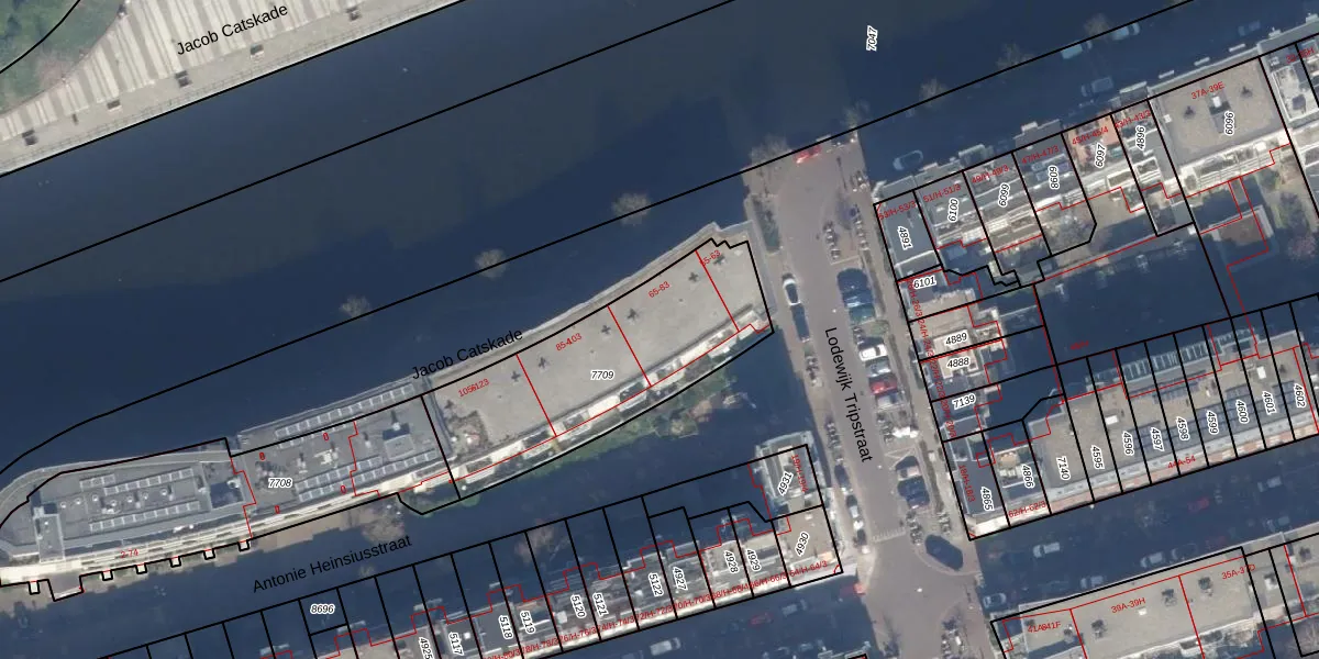 Het perceel waarop Jacob Catskade 77 staat heeft een oppervlakte van 914 m². Dit is een groot perceel. De perceeloppervlakte wordt geregistreerd door het Kadaster. Gedetailleerde informatie over de maten van dit perceel kunt u vinden in het rapport Kadastrale kaart met maatvoering van Jacob Catskade 77.
