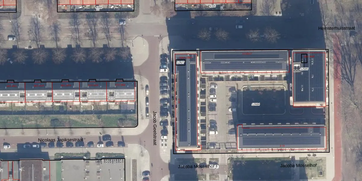 Jacob Geelstraat 1 is gelegen op kadastraal perceel STN02D12684. Deze kadastrale aanduiding is uniek en wordt gebruikt door het Kadaster om eigendomsrechten en andere zakelijke rechten vast te leggen. Het perceel maakt onderdeel uit van de kadastrale gemeente Sloten Noord-Holland.