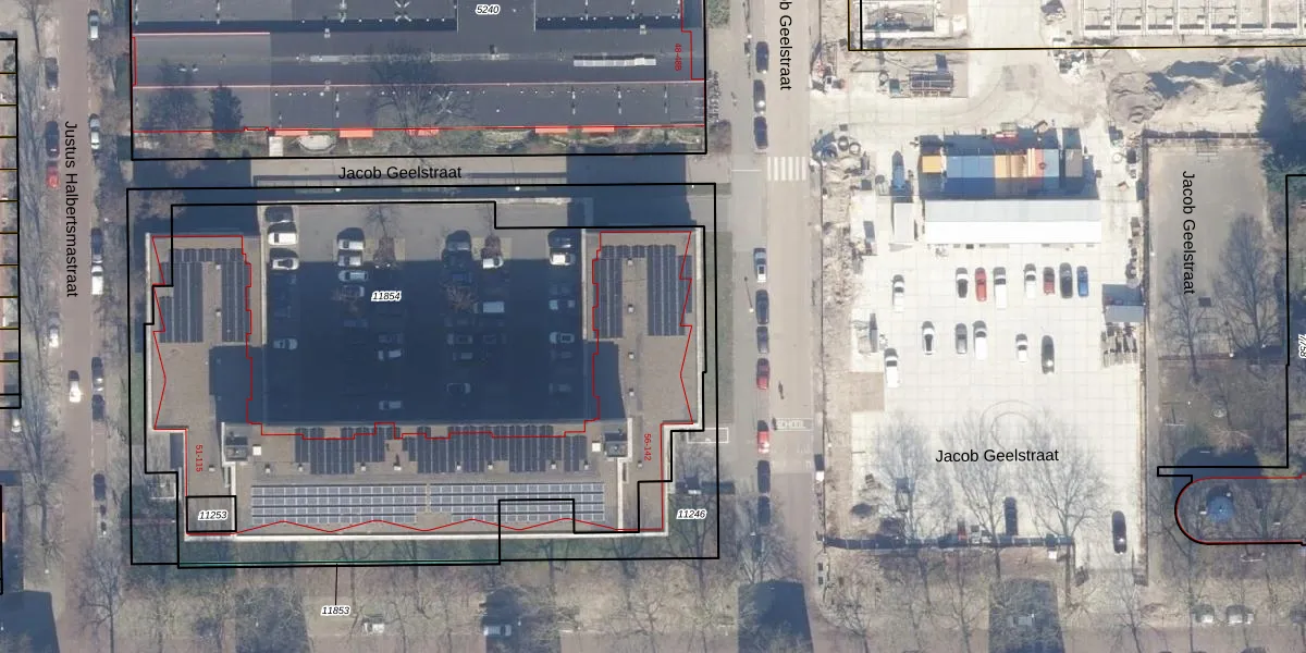 Het perceel waarop Jacob Geelstraat 76 staat heeft een oppervlakte van 4097 m². Dit is een zeer groot perceel. De perceeloppervlakte wordt geregistreerd door het Kadaster. Gedetailleerde informatie over de maten van dit perceel kunt u vinden in het rapport Kadastrale kaart met maatvoering van Jacob Geelstraat 76.