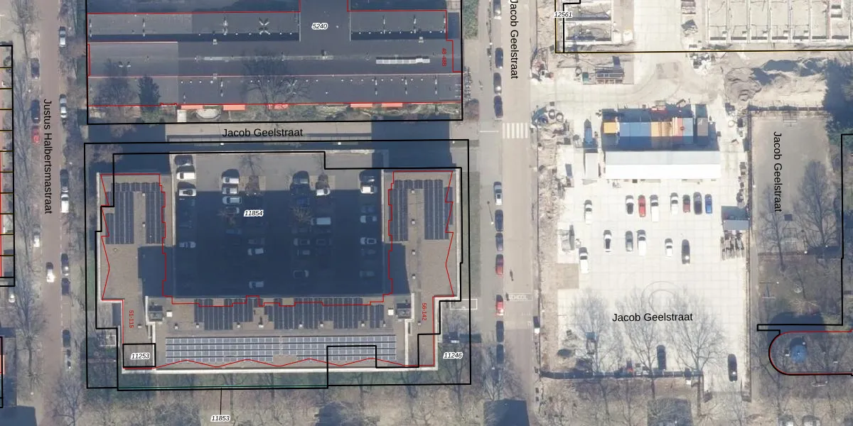Het perceel waarop Jacob Geelstraat 84 staat heeft een oppervlakte van 4097 m². Dit is een zeer groot perceel. De perceeloppervlakte wordt geregistreerd door het Kadaster. Gedetailleerde informatie over de maten van dit perceel kunt u vinden in het rapport Kadastrale kaart met maatvoering van Jacob Geelstraat 84.
