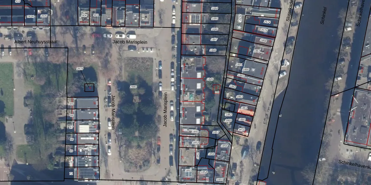 Het perceel waarop Jacob Marisplein 13-B staat heeft een oppervlakte van 850 m². Dit is een groot perceel. De perceeloppervlakte wordt geregistreerd door het Kadaster. Gedetailleerde informatie over de maten van dit perceel kunt u vinden in het rapport Kadastrale kaart met maatvoering van Jacob Marisplein 13-B.