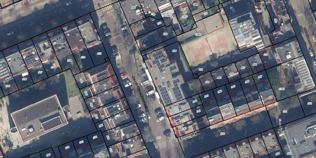 Het perceel waarop Jacob Obrechtstraat 67-F staat heeft een oppervlakte van 913 m². Dit is een groot perceel. De perceeloppervlakte wordt geregistreerd door het Kadaster. Gedetailleerde informatie over de maten van dit perceel kunt u vinden in het rapport Kadastrale kaart met maatvoering van Jacob Obrechtstraat 67-F.