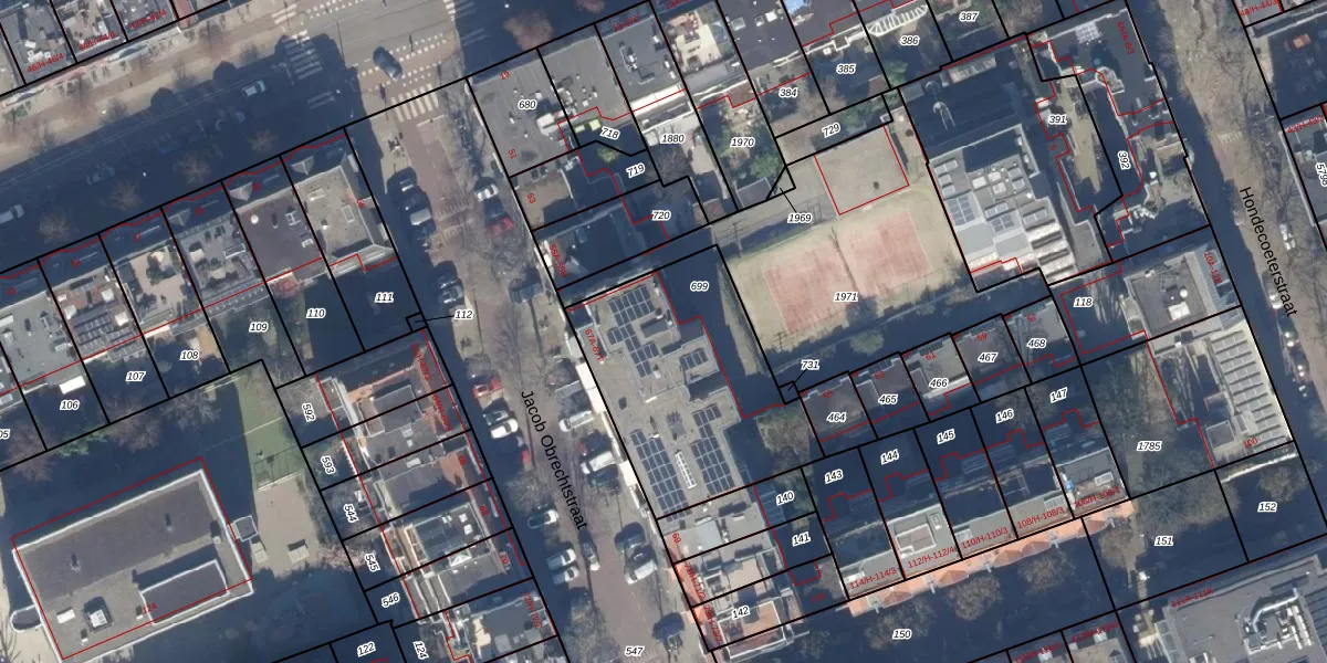 Het perceel waarop Jacob Obrechtstraat 67-R staat heeft een oppervlakte van 913 m². Dit is een groot perceel. De perceeloppervlakte wordt geregistreerd door het Kadaster. Gedetailleerde informatie over de maten van dit perceel kunt u vinden in het rapport Kadastrale kaart met maatvoering van Jacob Obrechtstraat 67-R.