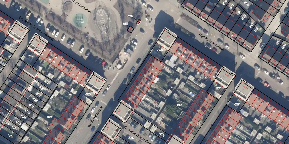 Het perceel waarop Jacob Paffstraat 39 staat heeft een oppervlakte van 3061 m². Dit is een zeer groot perceel. De perceeloppervlakte wordt geregistreerd door het Kadaster. Gedetailleerde informatie over de maten van dit perceel kunt u vinden in het rapport Kadastrale kaart met maatvoering van Jacob Paffstraat 39.