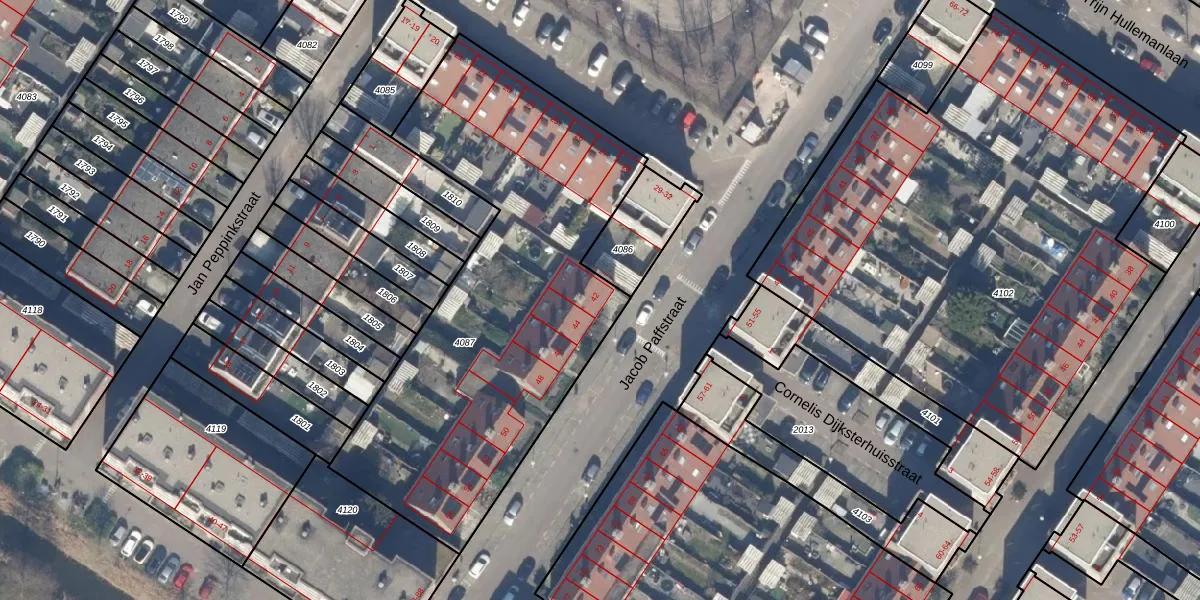 Jacob Paffstraat 42 is gelegen op kadastraal perceel STN02G4087. Deze kadastrale aanduiding is uniek en wordt gebruikt door het Kadaster om eigendomsrechten en andere zakelijke rechten vast te leggen. Het perceel maakt onderdeel uit van de kadastrale gemeente Sloten Noord-Holland.