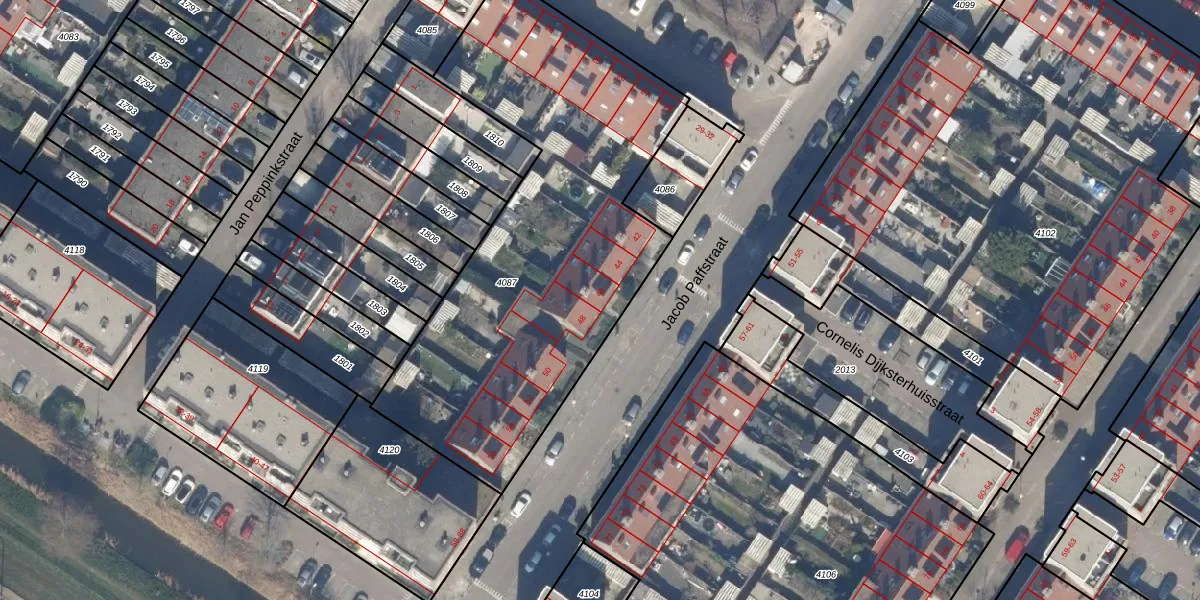 Jacob Paffstraat 46 is gelegen op kadastraal perceel STN02G4087. Deze kadastrale aanduiding is uniek en wordt gebruikt door het Kadaster om eigendomsrechten en andere zakelijke rechten vast te leggen. Het perceel maakt onderdeel uit van de kadastrale gemeente Sloten Noord-Holland.