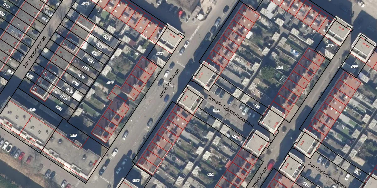Jacob Paffstraat 59 is gelegen op kadastraal perceel STN02G4103. Deze kadastrale aanduiding is uniek en wordt gebruikt door het Kadaster om eigendomsrechten en andere zakelijke rechten vast te leggen. Het perceel maakt onderdeel uit van de kadastrale gemeente Sloten Noord-Holland.
