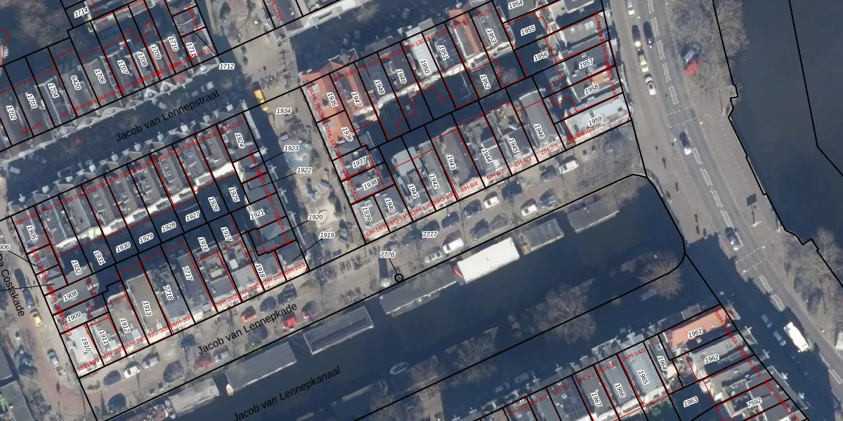 Jacob van Lennepkade 12-H is gelegen op kadastraal perceel ASD13Q1941. Deze kadastrale aanduiding is uniek en wordt gebruikt door het Kadaster om eigendomsrechten en andere zakelijke rechten vast te leggen. Het perceel maakt onderdeel uit van de kadastrale gemeente Amsterdam.