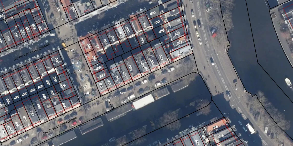 Jacob van Lennepkade 6-H is gelegen op kadastraal perceel ASD13Q1944. Deze kadastrale aanduiding is uniek en wordt gebruikt door het Kadaster om eigendomsrechten en andere zakelijke rechten vast te leggen. Het perceel maakt onderdeel uit van de kadastrale gemeente Amsterdam.