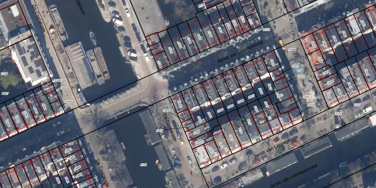 Het perceel waarop het adres ligt is ASD13-Q-1932. De afkorting 'ASD13' staat voor kadastrale gemeente Amsterdam. Het perceel is 124 m² groot. Dat is kleiner dan de gemiddelde perceeloppervlakte in Amsterdam, dat op 393,94 m² ligt. De grootste perceeloppervlakte in de kadastrale gemeente is 6,2 ha. De kleinste oppervlakte bedraagt 1 m². Er zijn 5 adressen aanwezig op het perceel. De laatste wijziging in het de Basisregistratie Kadaster (BRK) was op 03-11-2006.