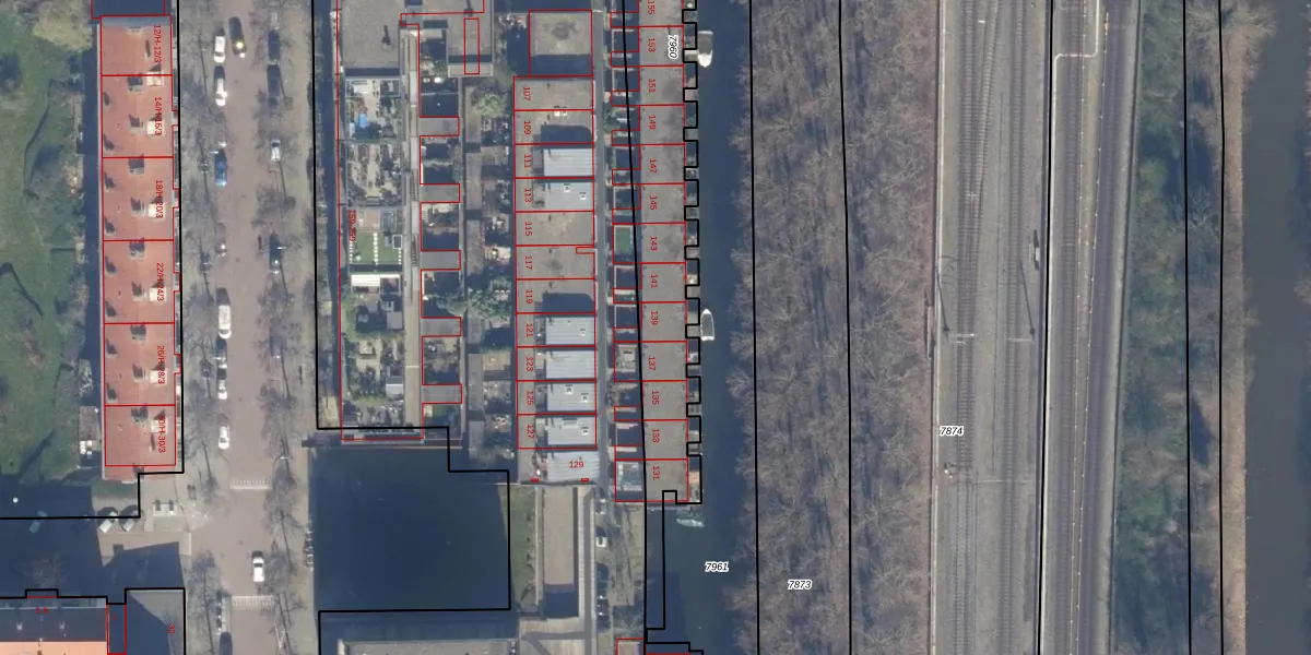 Het perceel waarop het adres ligt is STN02-D-7960. De afkorting 'STN02' staat voor kadastrale gemeente Sloten Noord-Holland. Het perceel is 1606 m² groot. Dat is kleiner dan de gemiddelde perceeloppervlakte in Sloten Noord-Holland, dat op 2098,9 m² ligt. De grootste perceeloppervlakte in de kadastrale gemeente is 1,05 km². De kleinste oppervlakte bedraagt 0 m². Er zijn 30 adressen aanwezig op het perceel. In de Basisregistratie Kadaster (BRK) werden de grenzen van het perceel geregistreerd op 16-11-2006.