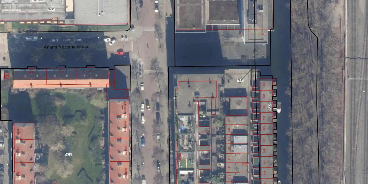 Het perceel waarop het adres ligt is STN02-D-7957. De afkorting 'STN02' staat voor kadastrale gemeente Sloten Noord-Holland. De oppervlakte van het perceel is 9879 m². Dat is groter dan gemiddeld in Sloten Noord-Holland, waar de gemiddelde perceeloppervlakte op 2102,4 m² ligt. Het grootste perceel in de kadastrale gemeente is 1,05 km². Het kleinste perceel heeft een oppervlakte van 0 m². Op het perceel liggen in totaal 130 adressen. De huidige grenzen van het perceel zijn digitaal in de Basisregistratie Kadaster (BRK) geregistreerd op 01-03-2002.