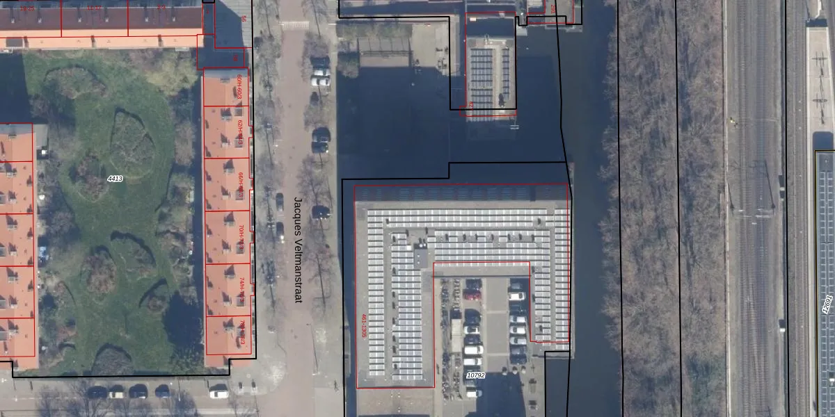 Het perceel waarop Jacques Veltmanstraat 655 staat heeft een oppervlakte van 5565 m². Dit is een zeer groot perceel. De perceeloppervlakte wordt geregistreerd door het Kadaster. Gedetailleerde informatie over de maten van dit perceel kunt u vinden in het rapport Kadastrale kaart met maatvoering van Jacques Veltmanstraat 655.