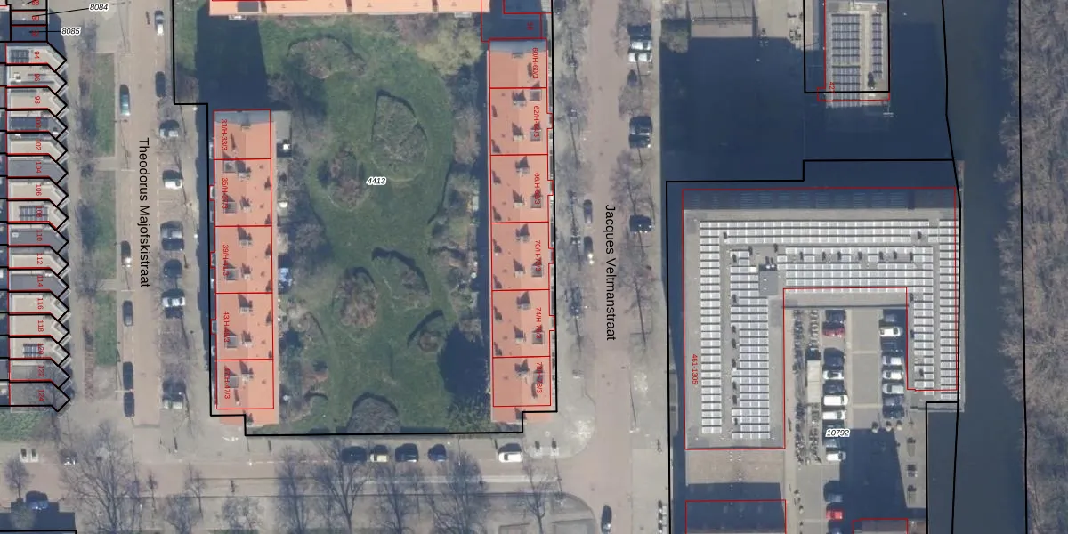 Het perceel waarop Jacques Veltmanstraat 72-H staat heeft een oppervlakte van 6011 m². Dit is een zeer groot perceel. De perceeloppervlakte wordt geregistreerd door het Kadaster. Gedetailleerde informatie over de maten van dit perceel kunt u vinden in het rapport Kadastrale kaart met maatvoering van Jacques Veltmanstraat 72-H.