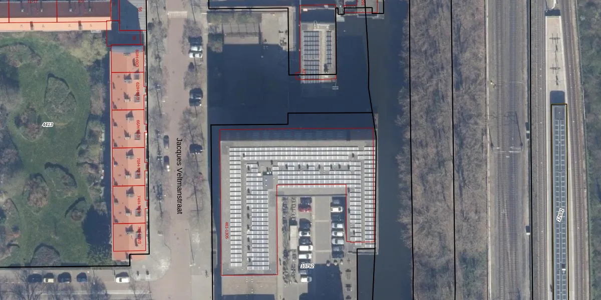 Het perceel waarop Jacques Veltmanstraat 989 staat heeft een oppervlakte van 5565 m². Dit is een zeer groot perceel. De perceeloppervlakte wordt geregistreerd door het Kadaster. Gedetailleerde informatie over de maten van dit perceel kunt u vinden in het rapport Kadastrale kaart met maatvoering van Jacques Veltmanstraat 989.