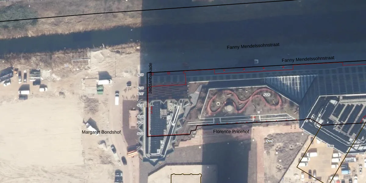 Jaddanbaikade 253 is gelegen op kadastraal perceel ASD30AK5220. Deze kadastrale aanduiding is uniek en wordt gebruikt door het Kadaster om eigendomsrechten en andere zakelijke rechten vast te leggen. Het perceel maakt onderdeel uit van de kadastrale gemeente Amsterdam.
