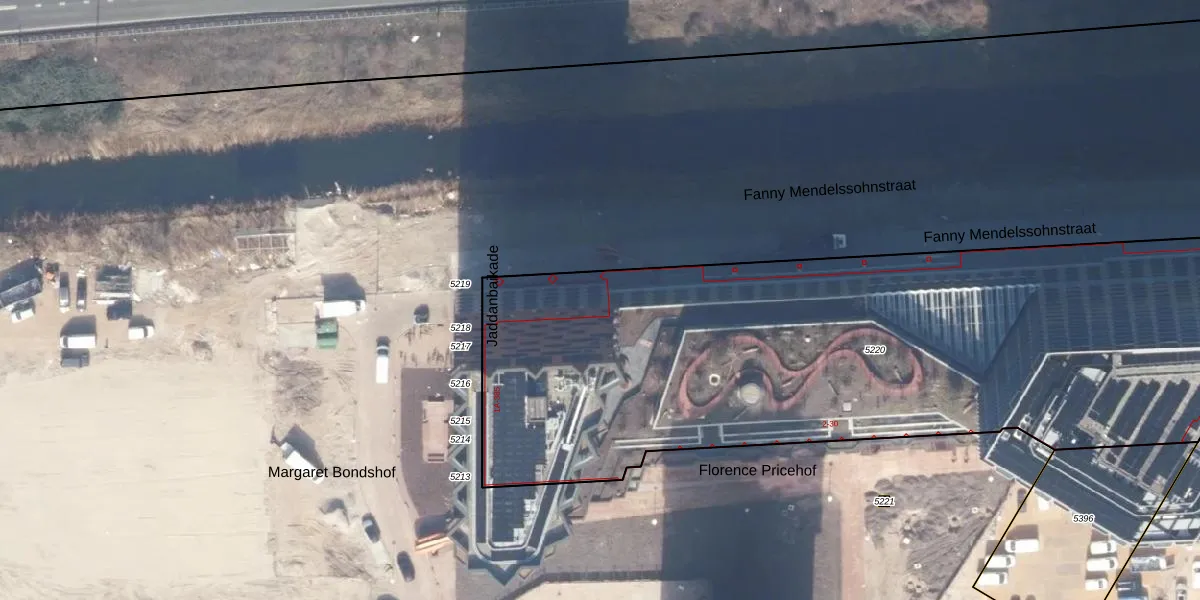Jaddanbaikade 255 is gelegen op kadastraal perceel ASD30AK5220. Deze kadastrale aanduiding is uniek en wordt gebruikt door het Kadaster om eigendomsrechten en andere zakelijke rechten vast te leggen. Het perceel maakt onderdeel uit van de kadastrale gemeente Amsterdam.
