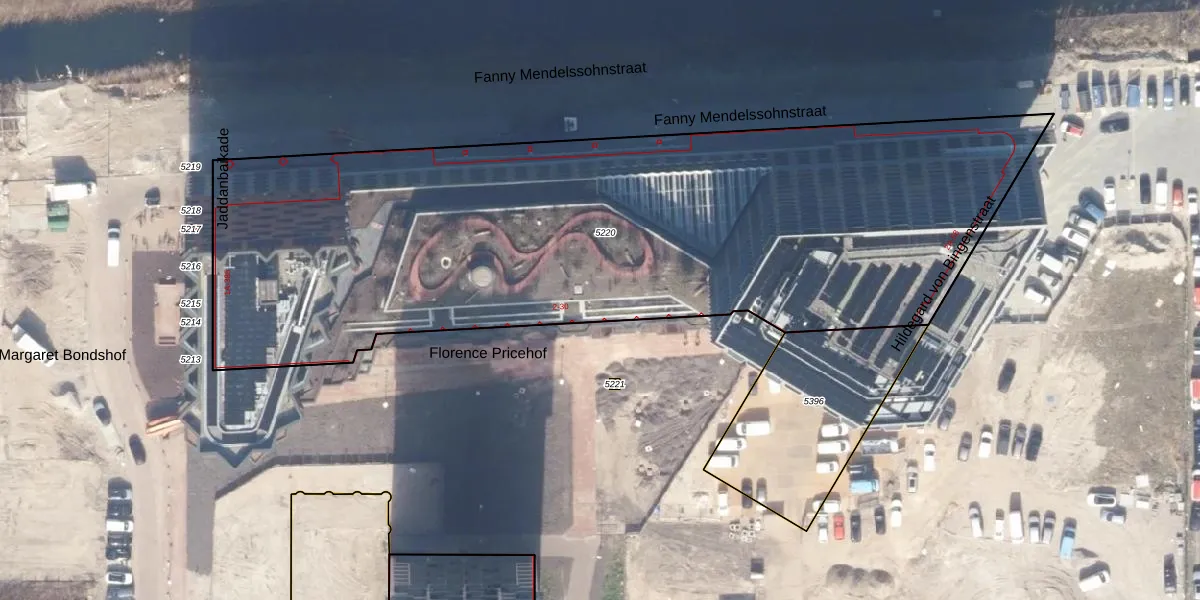 Het perceel waarop Jaddanbaikade 39 staat heeft een oppervlakte van 4198 m². Dit is een zeer groot perceel. De perceeloppervlakte wordt geregistreerd door het Kadaster. Gedetailleerde informatie over de maten van dit perceel kunt u vinden in het rapport Kadastrale kaart met maatvoering van Jaddanbaikade 39.