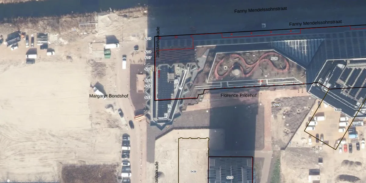 Jaddanbaikade 55 is gelegen op kadastraal perceel ASD30AK5220. Deze kadastrale aanduiding is uniek en wordt gebruikt door het Kadaster om eigendomsrechten en andere zakelijke rechten vast te leggen. Het perceel maakt onderdeel uit van de kadastrale gemeente Amsterdam.