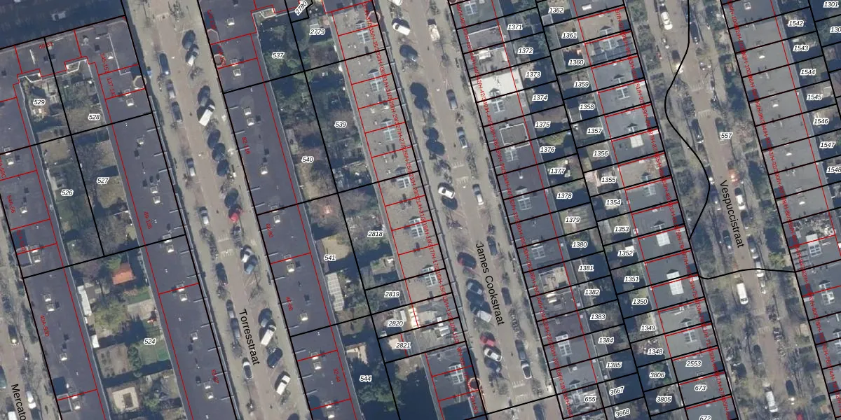 Het perceel waarop James Cookstraat 21-H staat heeft een oppervlakte van 480 m². Dit is een groot perceel. De perceeloppervlakte wordt geregistreerd door het Kadaster. Gedetailleerde informatie over de maten van dit perceel kunt u vinden in het rapport Kadastrale kaart met maatvoering van James Cookstraat 21-H.