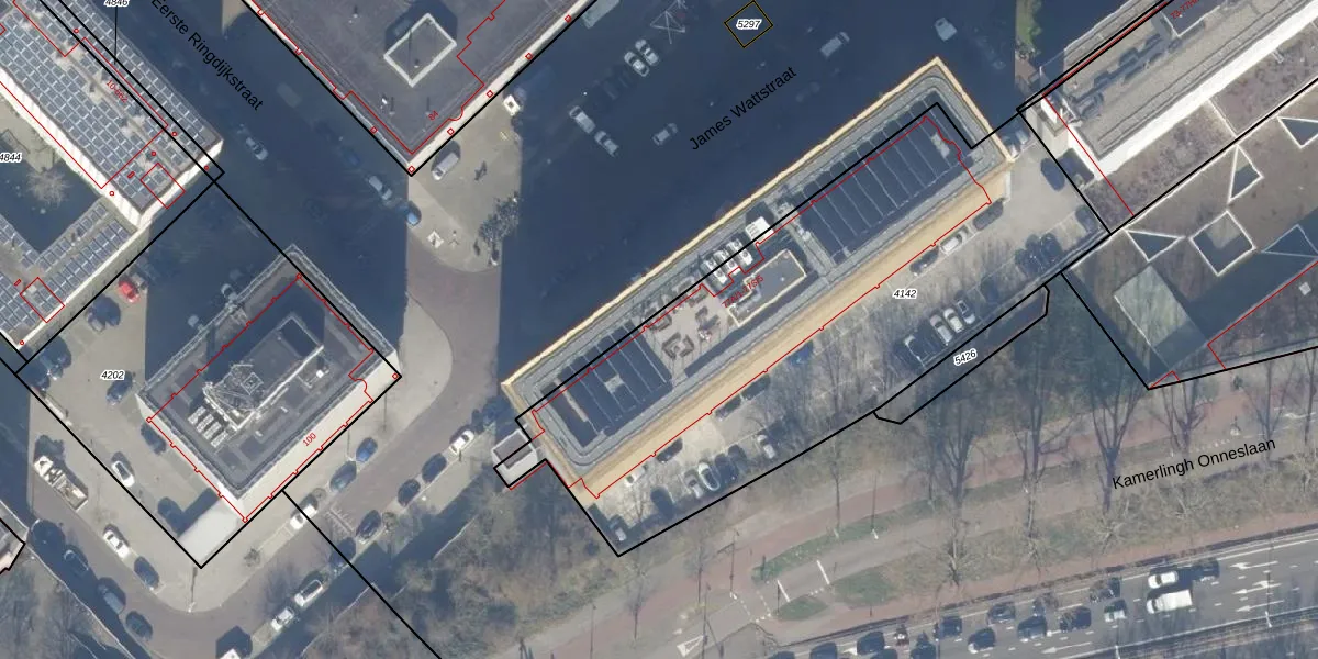 Het perceel waarop James Wattstraat 77-S-2 staat heeft een oppervlakte van 2636 m². Dit is een zeer groot perceel. De perceeloppervlakte wordt geregistreerd door het Kadaster. Gedetailleerde informatie over de maten van dit perceel kunt u vinden in het rapport Kadastrale kaart met maatvoering van James Wattstraat 77-S-2.