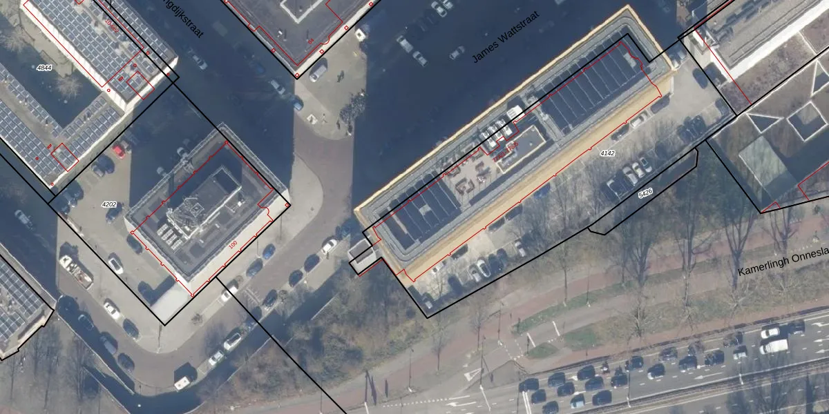 Het perceel waarop James Wattstraat 77-S-4 staat heeft een oppervlakte van 2636 m². Dit is een zeer groot perceel. De perceeloppervlakte wordt geregistreerd door het Kadaster. Gedetailleerde informatie over de maten van dit perceel kunt u vinden in het rapport Kadastrale kaart met maatvoering van James Wattstraat 77-S-4.