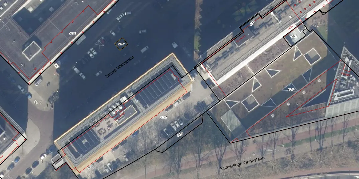 Het perceel waarop James Wattstraat 77-B-9 staat heeft een oppervlakte van 2636 m². Dit is een zeer groot perceel. De perceeloppervlakte wordt geregistreerd door het Kadaster. Gedetailleerde informatie over de maten van dit perceel kunt u vinden in het rapport Kadastrale kaart met maatvoering van James Wattstraat 77-B-9.