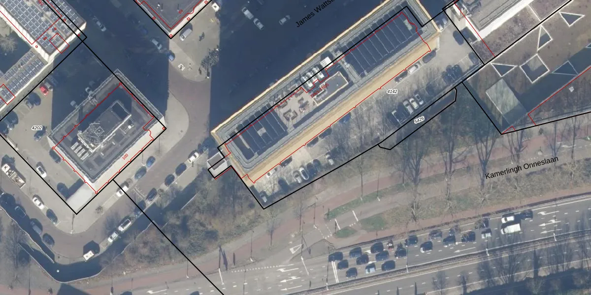 Het perceel waarop James Wattstraat 77-B-12 staat heeft een oppervlakte van 2636 m². Dit is een zeer groot perceel. De perceeloppervlakte wordt geregistreerd door het Kadaster. Gedetailleerde informatie over de maten van dit perceel kunt u vinden in het rapport Kadastrale kaart met maatvoering van James Wattstraat 77-B-12.