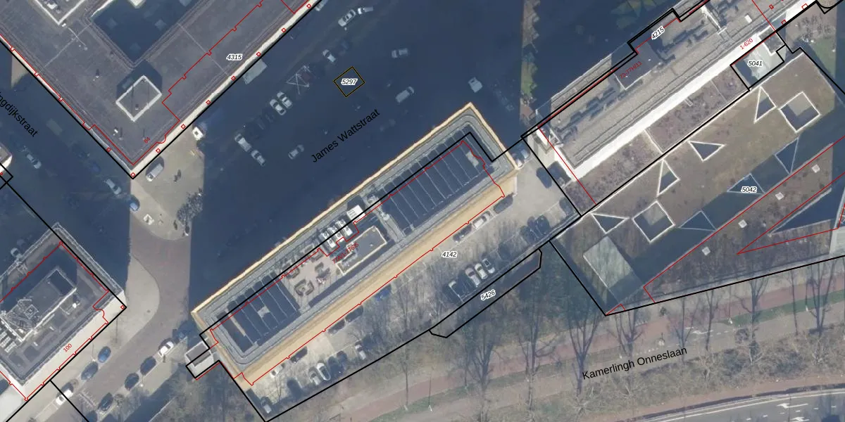 Het perceel waarop James Wattstraat 77-E-4 staat heeft een oppervlakte van 2636 m². Dit is een zeer groot perceel. De perceeloppervlakte wordt geregistreerd door het Kadaster. Gedetailleerde informatie over de maten van dit perceel kunt u vinden in het rapport Kadastrale kaart met maatvoering van James Wattstraat 77-E-4.