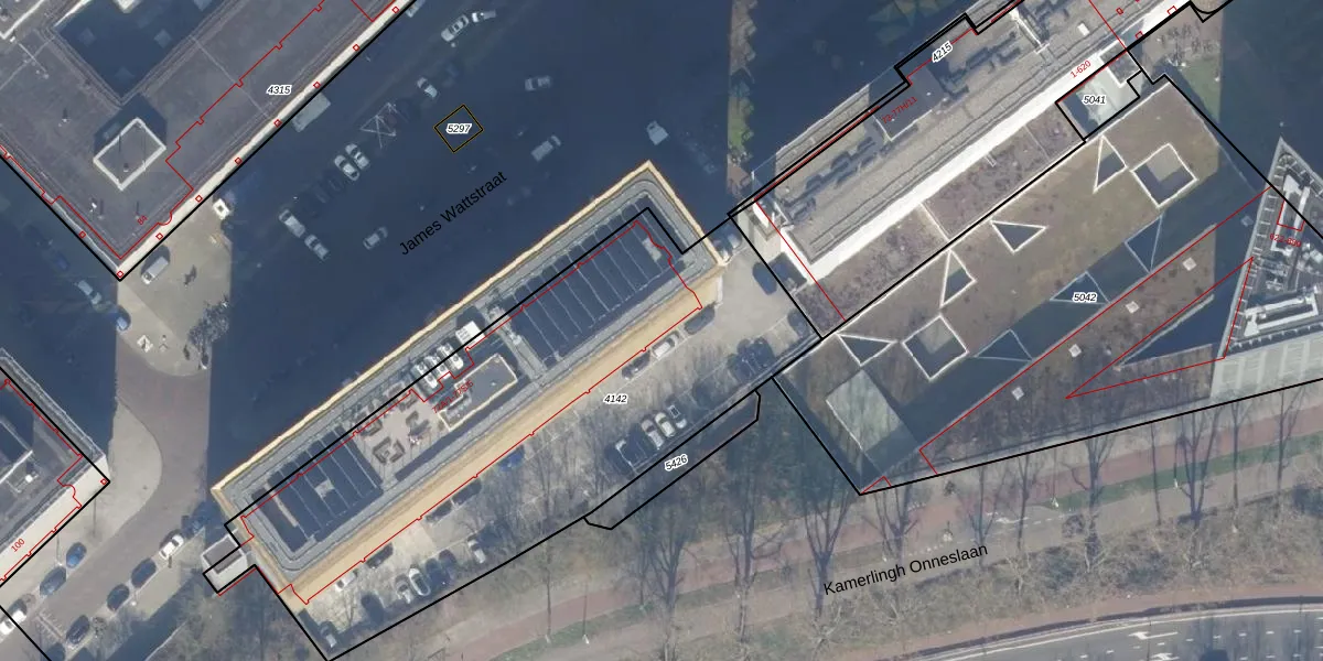 Het perceel waarop James Wattstraat 77-E-12 staat heeft een oppervlakte van 2636 m². Dit is een zeer groot perceel. De perceeloppervlakte wordt geregistreerd door het Kadaster. Gedetailleerde informatie over de maten van dit perceel kunt u vinden in het rapport Kadastrale kaart met maatvoering van James Wattstraat 77-E-12.
