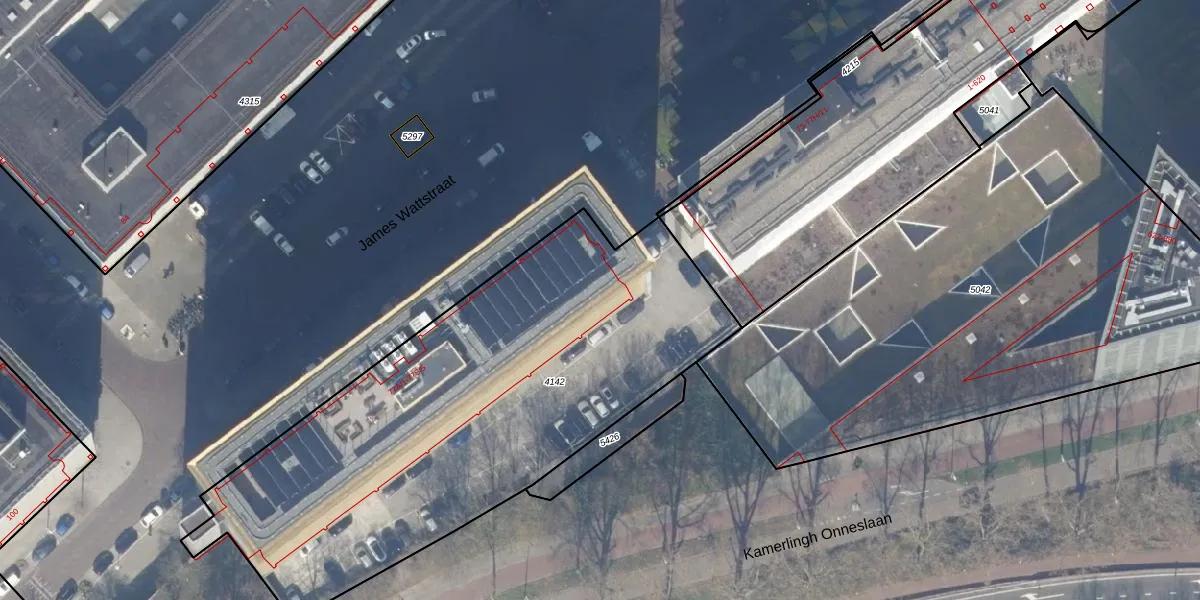Het perceel waarop James Wattstraat 77-E-16 staat heeft een oppervlakte van 2636 m². Dit is een zeer groot perceel. De perceeloppervlakte wordt geregistreerd door het Kadaster. Gedetailleerde informatie over de maten van dit perceel kunt u vinden in het rapport Kadastrale kaart met maatvoering van James Wattstraat 77-E-16.