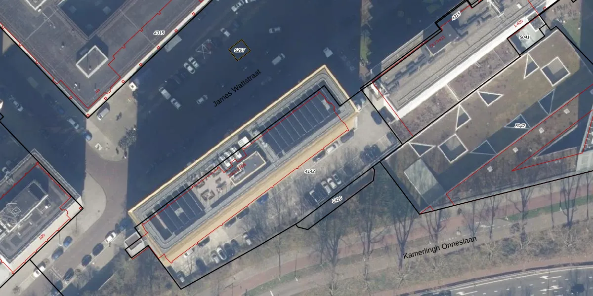 Het perceel waarop James Wattstraat 77-H-4 staat heeft een oppervlakte van 2636 m². Dit is een zeer groot perceel. De perceeloppervlakte wordt geregistreerd door het Kadaster. Gedetailleerde informatie over de maten van dit perceel kunt u vinden in het rapport Kadastrale kaart met maatvoering van James Wattstraat 77-H-4.