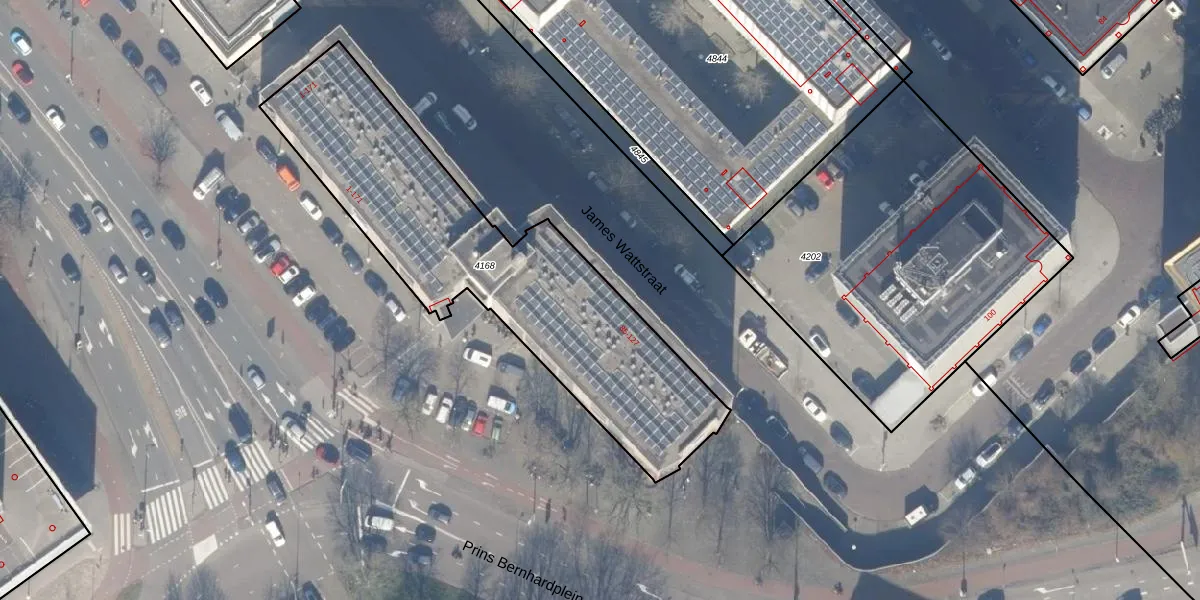 Het perceel waarop James Wattstraat 97 staat heeft een oppervlakte van 1577 m². Dit is een zeer groot perceel. De perceeloppervlakte wordt geregistreerd door het Kadaster. Gedetailleerde informatie over de maten van dit perceel kunt u vinden in het rapport Kadastrale kaart met maatvoering van James Wattstraat 97.