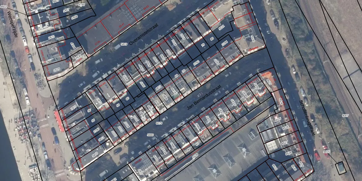 Het perceel waarop Jan Bernardusstraat 17-C staat heeft een oppervlakte van 90 m². Dit is een klein perceel. De perceeloppervlakte wordt geregistreerd door het Kadaster. Gedetailleerde informatie over de maten van dit perceel kunt u vinden in het rapport Kadastrale kaart met maatvoering van Jan Bernardusstraat 17-C.