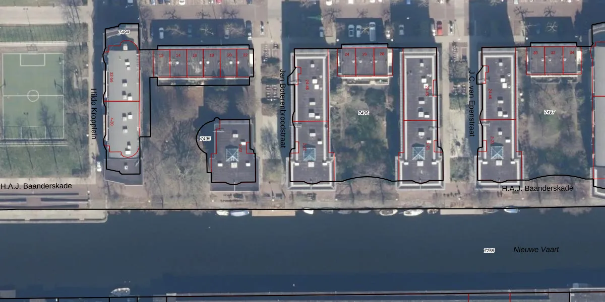 Het adres is gelegen op perceel 7496 in de sectie A en de kadastrale gemeente Amsterdam. De kadastrale aanduiding is aldus ASD02-A-7496. Het perceel is kleiner dan gemiddeld in Amsterdam. Het perceel is 2137 m² groot, terwijl het gemiddelde ligt op 2767,13 m². De grootste perceeloppervlakte in de kadastrale gemeente is 14,3 ha. De kleinste oppervlakte bedraagt 0 m². Op het perceel liggen in totaal 49 adressen. In de Basisregistratie Kadaster (BRK) werden de grenzen van het perceel geregistreerd op 24-10-2007.