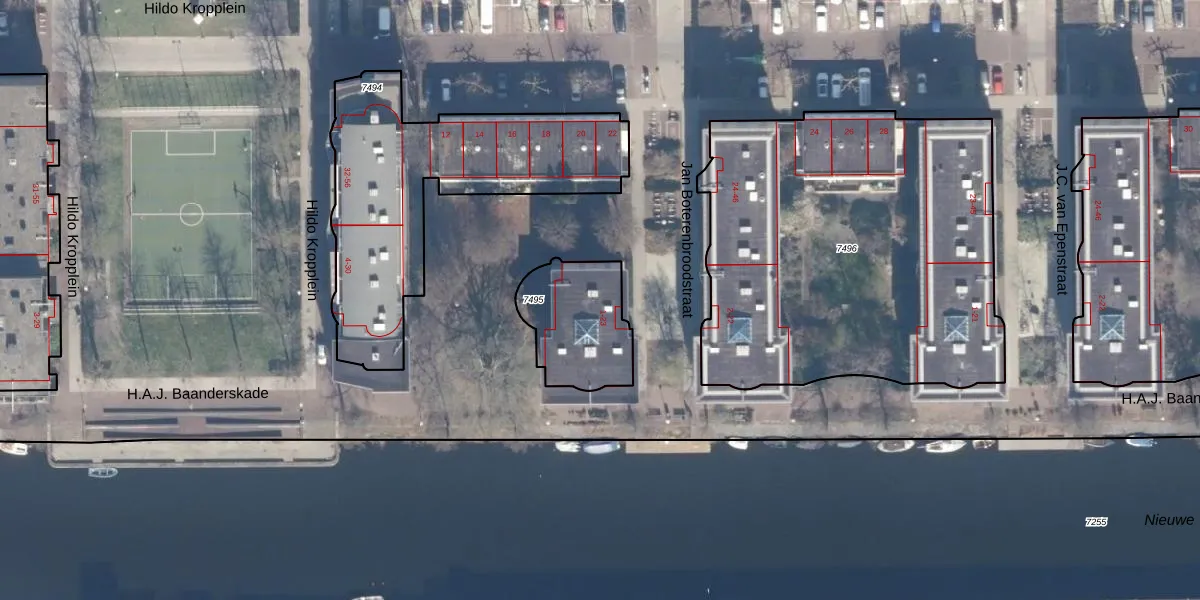 Jan Boterenbroodstraat 23 is gelegen op kadastraal perceel ASD02A7495. Deze kadastrale aanduiding is uniek en wordt gebruikt door het Kadaster om eigendomsrechten en andere zakelijke rechten vast te leggen. Het perceel maakt onderdeel uit van de kadastrale gemeente Amsterdam.