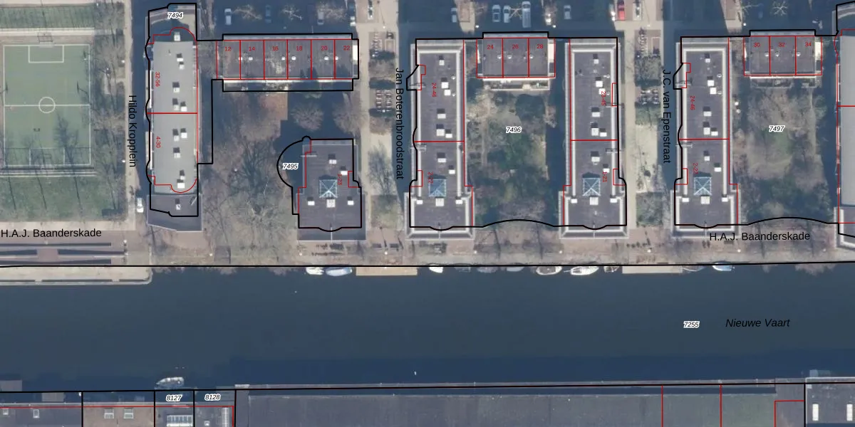 Jan Boterenbroodstraat 4 is gelegen op kadastraal perceel ASD02A7496. Deze kadastrale aanduiding is uniek en wordt gebruikt door het Kadaster om eigendomsrechten en andere zakelijke rechten vast te leggen. Het perceel maakt onderdeel uit van de kadastrale gemeente Amsterdam.