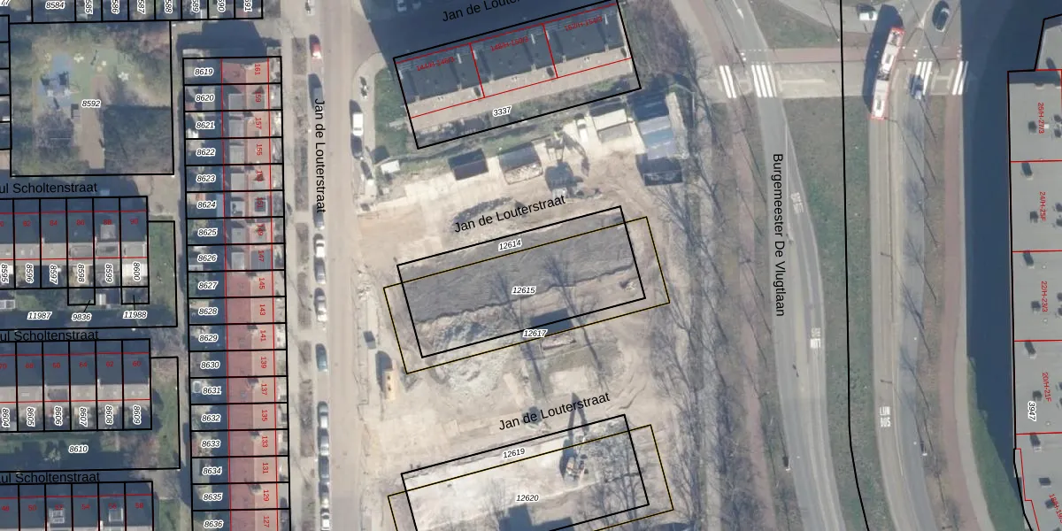 Het perceel waarop Jan de Louterstraat 240 staat heeft een oppervlakte van 624 m². Dit is een groot perceel. De perceeloppervlakte wordt geregistreerd door het Kadaster. Gedetailleerde informatie over de maten van dit perceel kunt u vinden in het rapport Kadastrale kaart met maatvoering van Jan de Louterstraat 240.