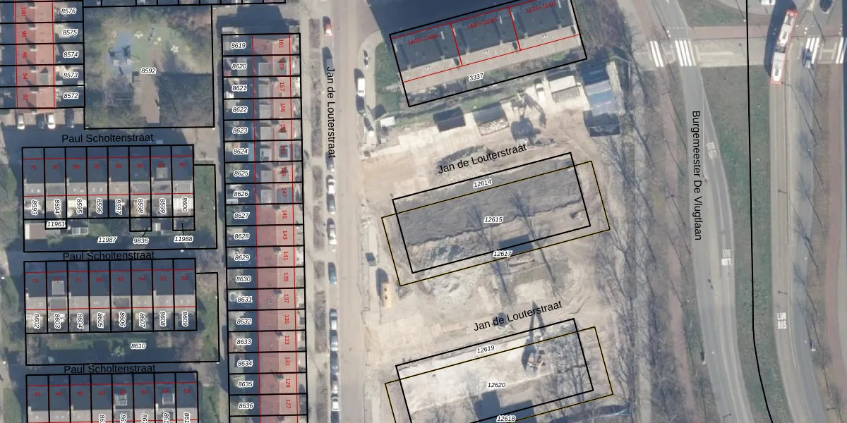 Het perceel waarop Jan de Louterstraat 262 staat heeft een oppervlakte van 624 m². Dit is een groot perceel. De perceeloppervlakte wordt geregistreerd door het Kadaster. Gedetailleerde informatie over de maten van dit perceel kunt u vinden in het rapport Kadastrale kaart met maatvoering van Jan de Louterstraat 262.