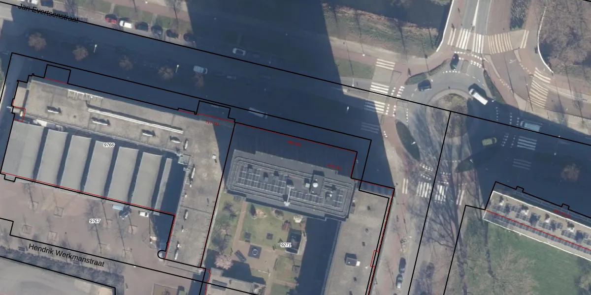 Het perceel waarop Jan Evertsenstraat 493 staat heeft een oppervlakte van 2950 m². Dit is een zeer groot perceel. De perceeloppervlakte wordt geregistreerd door het Kadaster. Gedetailleerde informatie over de maten van dit perceel kunt u vinden in het rapport Kadastrale kaart met maatvoering van Jan Evertsenstraat 493.