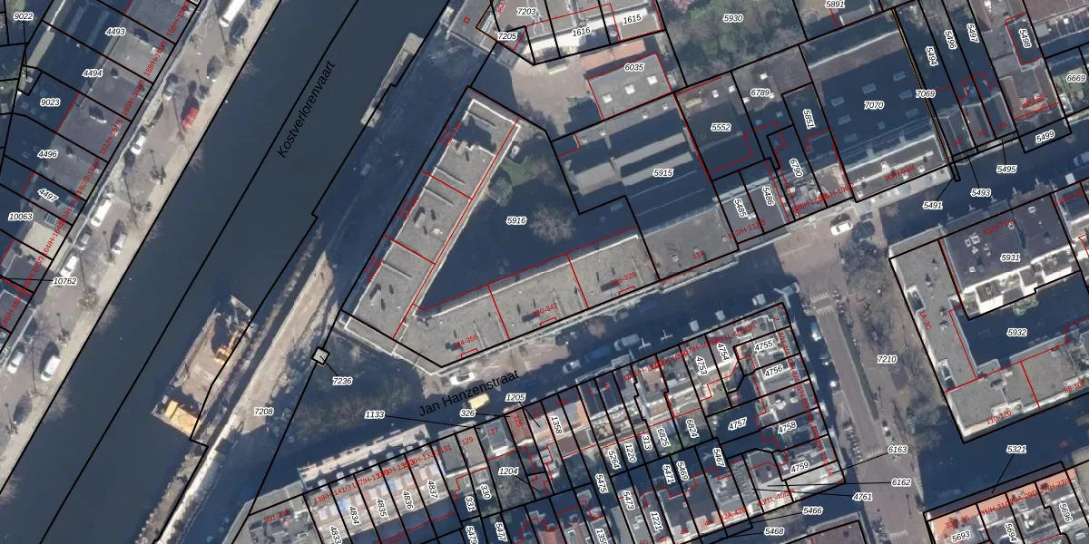 Het perceel waarop het adres ligt is ASD16-T-5916. De afkorting 'ASD16' staat voor kadastrale gemeente Amsterdam. De oppervlakte van het perceel is 1630 m². Dat is groter dan gemiddeld in Amsterdam, waar de gemiddelde perceeloppervlakte op 245,33 m² ligt. Het kleinste perceel in de kadastrale gemeente is 0 m² groot. De grootste perceeloppervlakte is 3,3 ha. Er zijn 47 adressen aanwezig op het perceel. In de Basisregistratie Kadaster (BRK) werden de grenzen van het perceel geregistreerd op 12-01-2007.