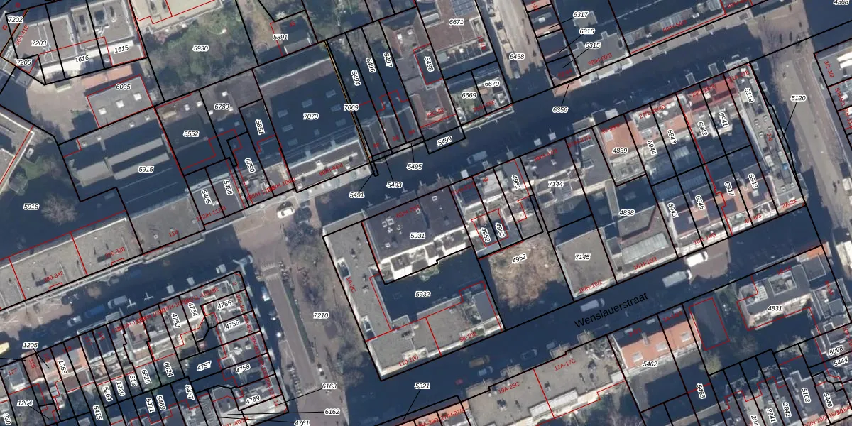Het adres is gelegen op perceel 5931 in de sectie T en de kadastrale gemeente Amsterdam. De kadastrale aanduiding is aldus ASD16-T-5931. Het perceel is met 353 m² relatief groot. Het gemiddelde ligt in de kadastrale gemeente Amsterdam op 245,33 m². Het kleinste perceel in de kadastrale gemeente is 0 m² groot. De grootste perceeloppervlakte is 3,3 ha. Op het perceel zijn 18 adressen aanwezig. In de Basisregistratie Kadaster (BRK) werden de grenzen van het perceel geregistreerd op 12-01-2007.